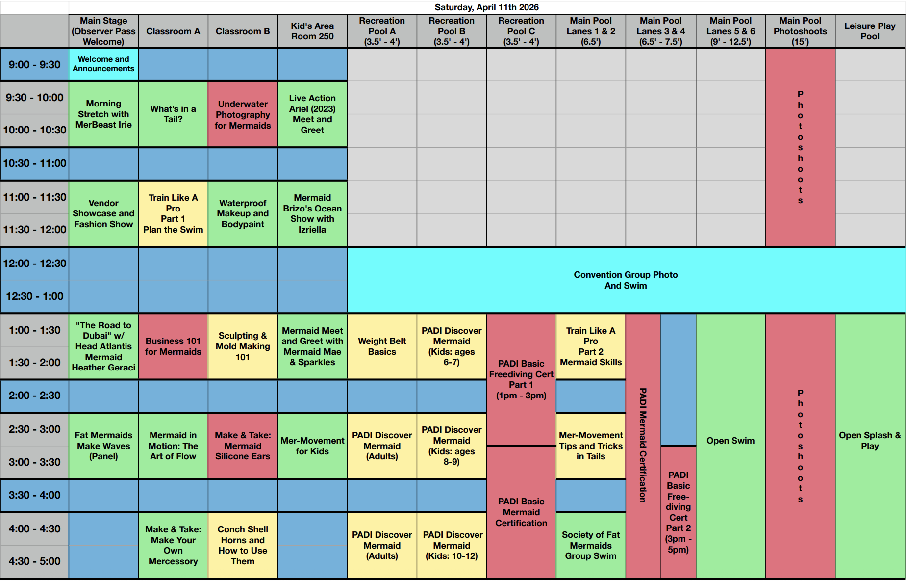 Red: Specialty Programming. In order to attend these specialty options you must have a Participant or Merling Pass as well as purchase the course of your choosing here. Photography Sessions can be booked directly with the photographer. Explore Photography packages here. Certification courses are booked directly by the instructor (see the course catalog for more details)