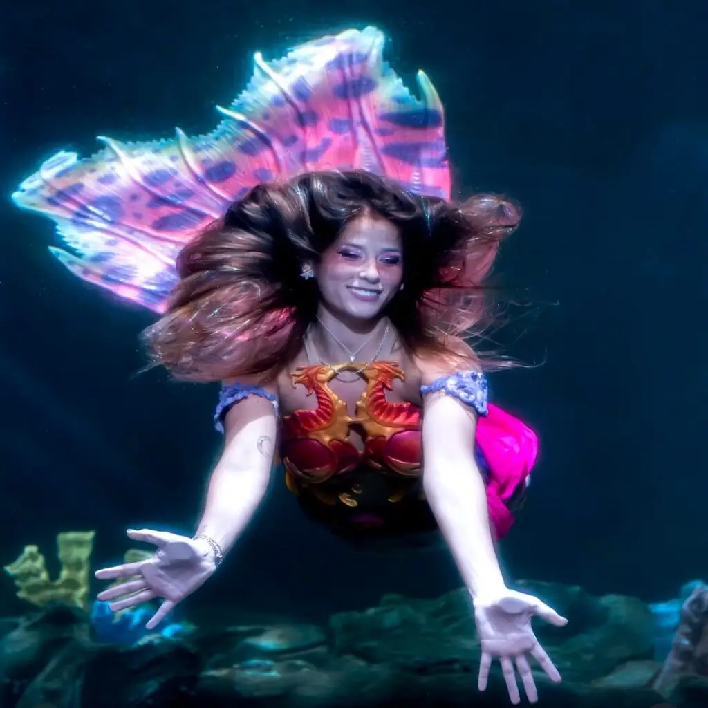 Heather’s career includes lead performance roles with Medusirena at the world-famous Wreck Bar, including the iconic Mermaids & Mimosas experience. Internationally, she has collaborated with Deep Dive Dubai and recently spearheaded professional mermaid productions at Atlantis Dubai, where she also served as the Lead Mythical Creature for commercial shoots. She is also an ocean advocate working with Ocean Rescue Alliance’s 1,000 Mermaids Artificial Reef Project.